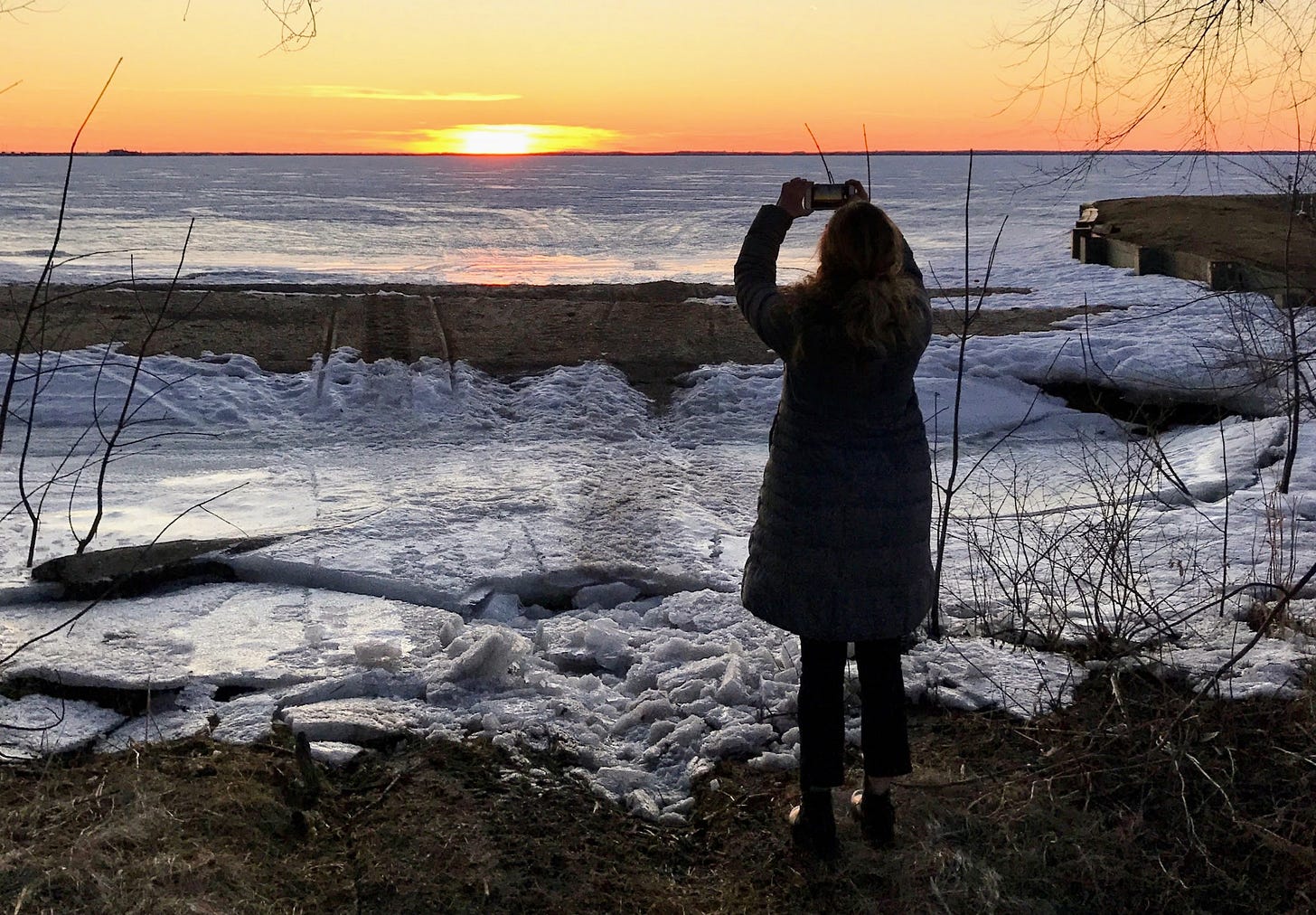 Me capturing a sunset at the dawn of the pandemic, March 2020, the Bay of Green Bay.